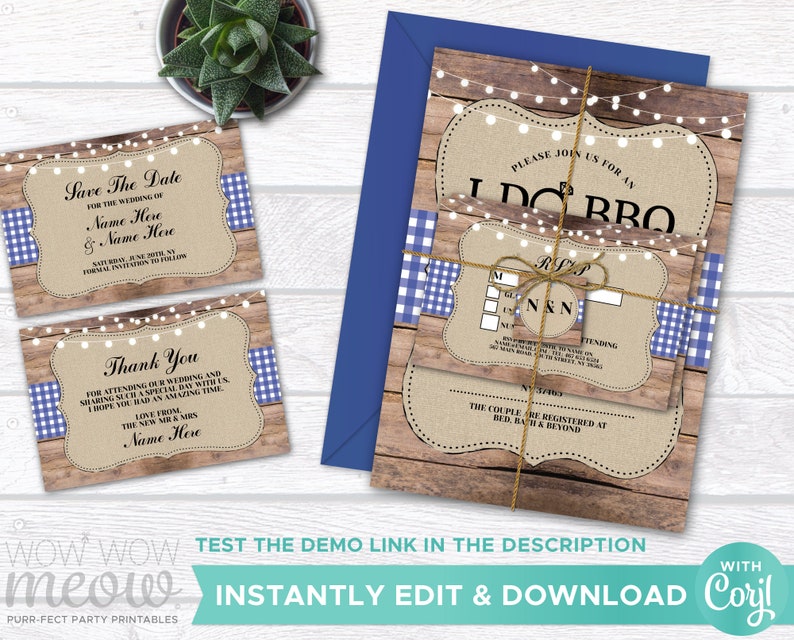 Rustic I Do BBQ Wedding Invitations Set Template Package ...