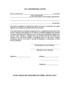 Completing your free waiver of lien form at the end of your construction project can protect you against any future claims being filed.