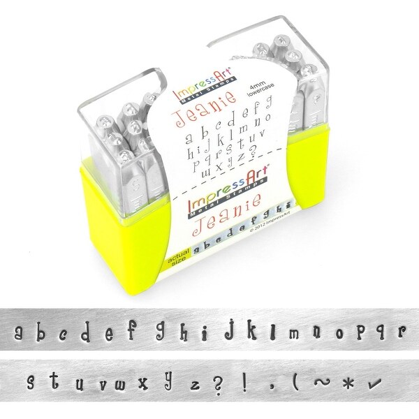 Oil-free plated finish protects agains rust. ImpressArt Metal Stamping Kit- Jeanie Lowercase. Add a fun, retro-inspired touch to your craft and jewelry designs with ImpressArt's Jeanie letter stamps.