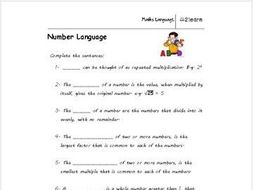 Math Language - Natural Numbers Worksheet for 9 - 16 year ...