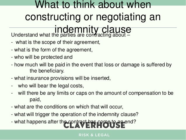Indemnity Clause Sample Australia. The Indemnitee will or has received payment under a valid and collectible insurance policy or under a valid and enforcement indemnity clause, bylaw or. Indemnification -- A standard mutual indemnity, where University indemnifies Sponsor with respect to negligence, and Sponsor indemnifies.