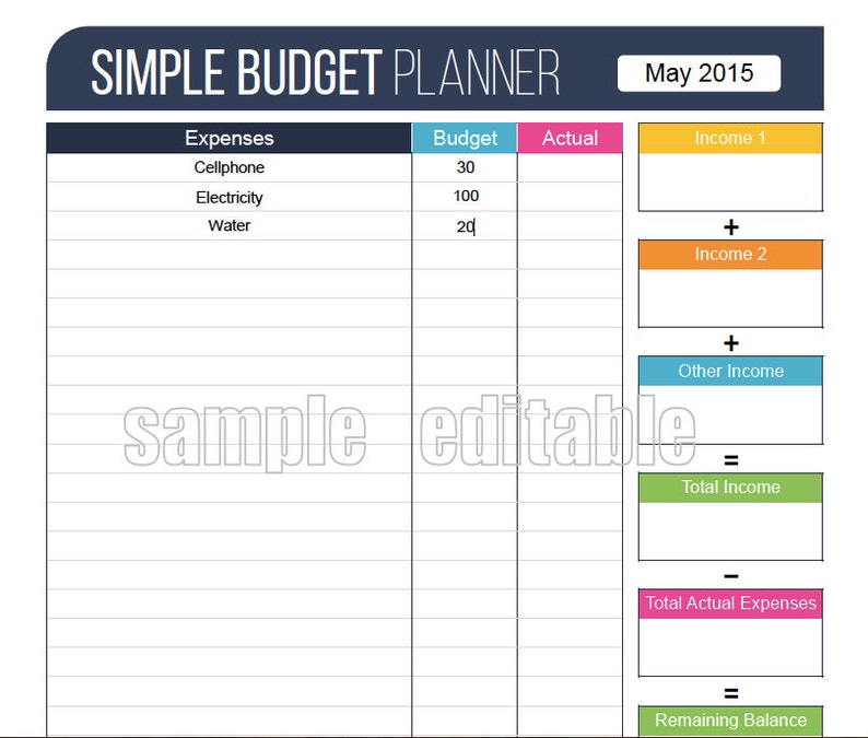 Simple Budget Planner Worksheet Fillable Personal | Etsy