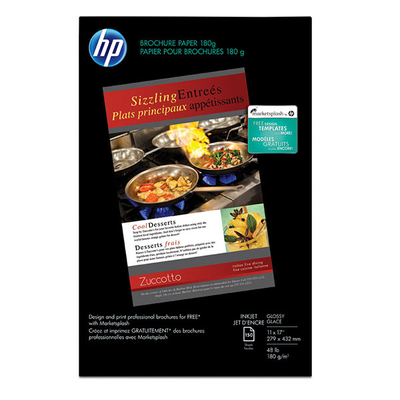 Hp Brochure Paper 180 G. This HP brochure paper has an attention-grabbing glossy finish that makes a great impression. HP papers are matched with HP printers and print cartridges to bring exceptional quality to all your printing creations.