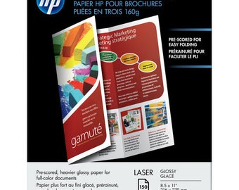 Overview HP Tri-fold Brochure Paper with improved dry time enables small to medium business customers to produce high-quality, tri-fold brochures Designed to work with HP inkjet printers, HP Tri-fold Brochure Paper features a bright-white finish and glossy coating for crisp text and vivid colors.