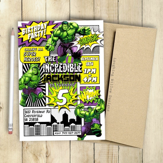 Incredible Hulk Invitation Incredible Hulk Birthday Party