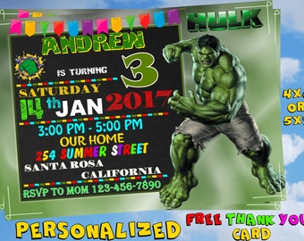 Hulk Birthday Party Printable Invitation with FREE Thank ...