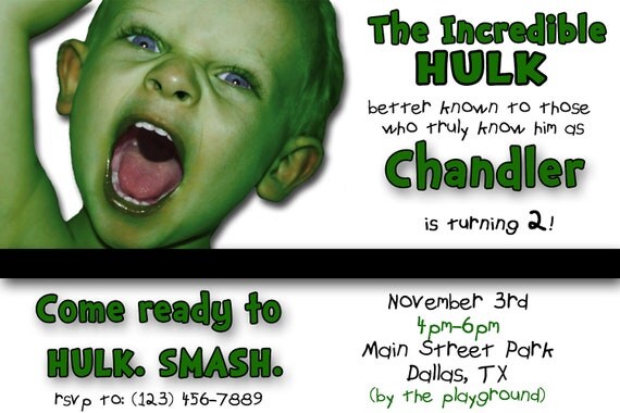 Turn your boy into Hulk! A nice sample. Hulk Invitation ...