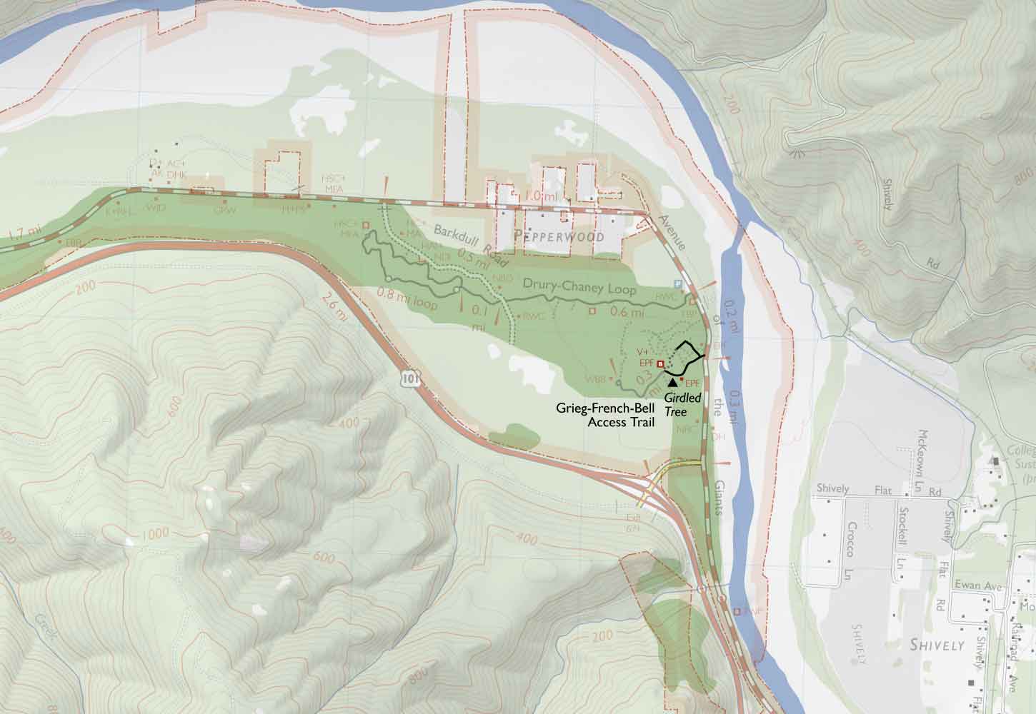 HUMBOLDT REDWOODS STATE PARK MAP CALIFORNIA - ToursMaps.com