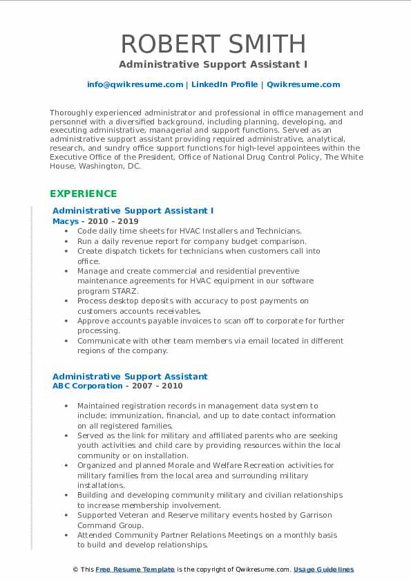Administrative Support Assistant Resume Samples | QwikResume